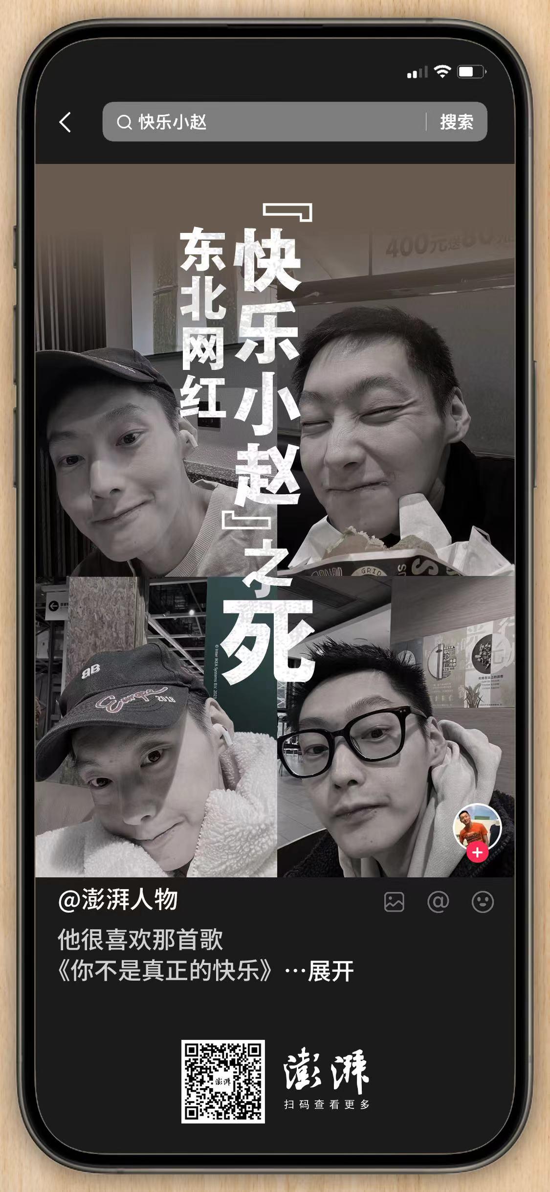 他生前的谋生工具,有着三十多万粉丝的抖音账号“快乐小赵”,成了最显眼的“遗物”。网络上的他是个十分招笑的人,以拍心直口快的视频著称。