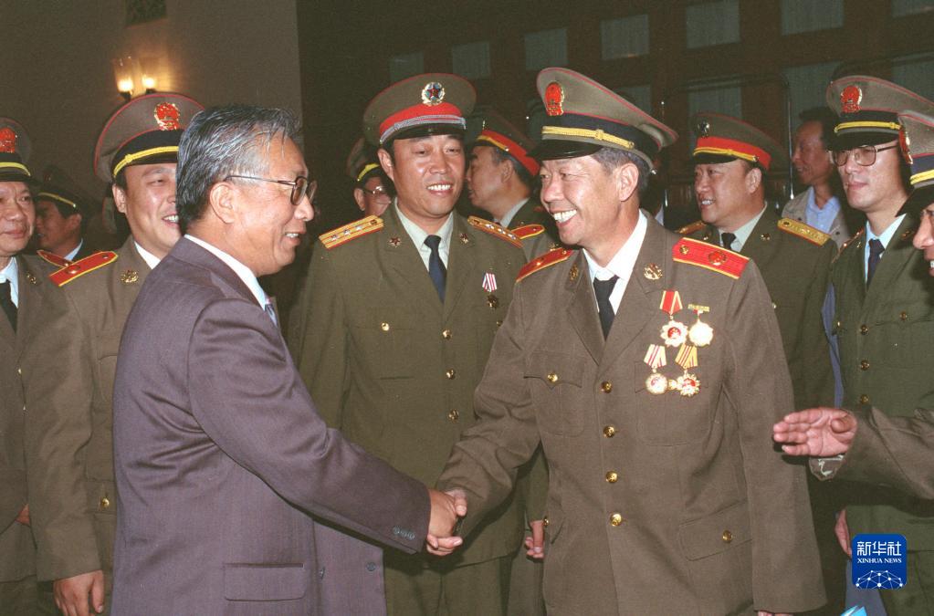 1993年9月20日,张思卿同志与参加中国十大杰出检察官颁奖大会的检察官亲切交谈。新华社记者 姚大伟 摄