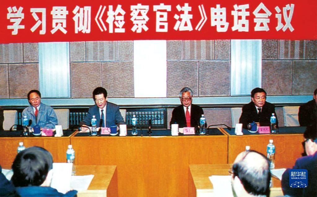 1995年3月2日,张思卿同志在北京主持召开学习贯彻《中华人民共和国检察官法》电话会议。新华社发