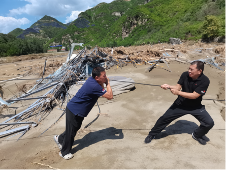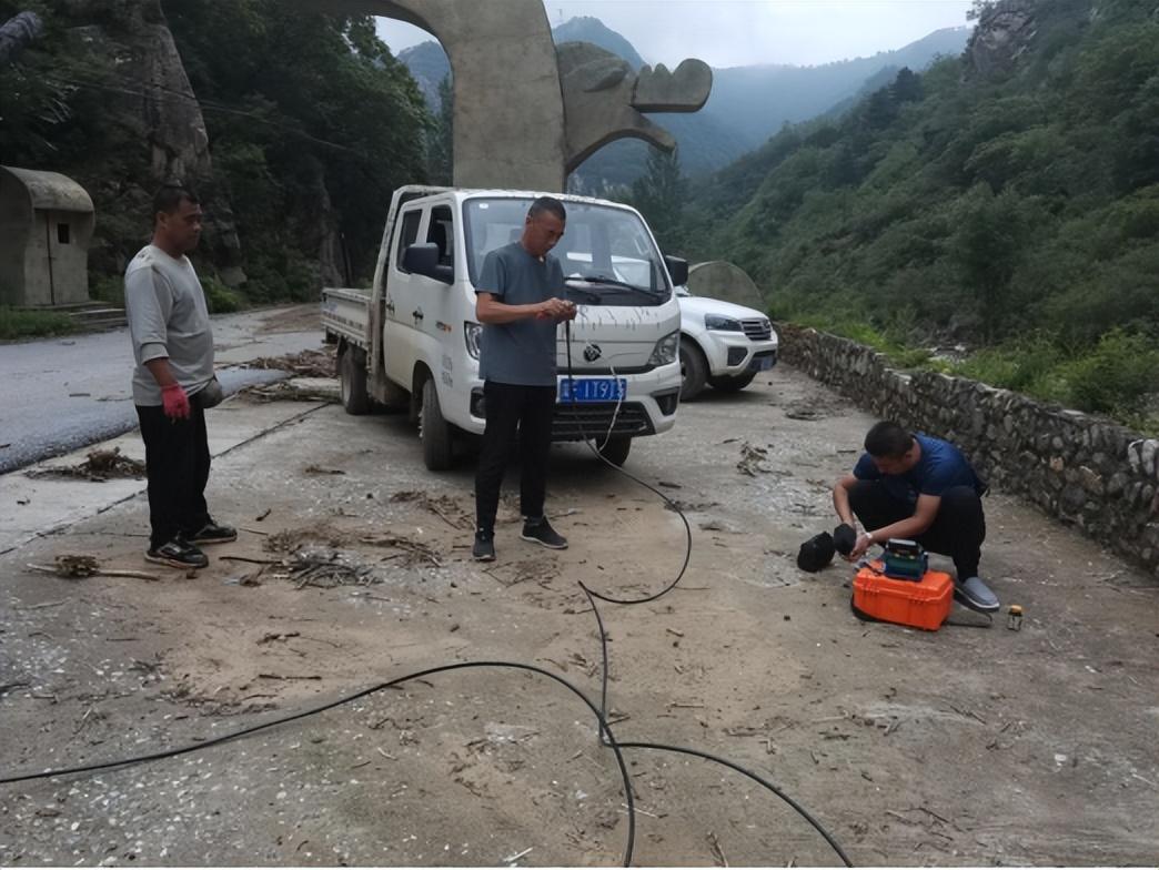 为尽快抢通蔡家峪乡通信网络,8月6日,在易县部分道路尚未修通的情况下,易县联通抢修人员选择从涞源县东杏花村绕行前往蔡家峪乡,赶赴现场排查光缆断点,第一时间为机房发电、完成抢修。