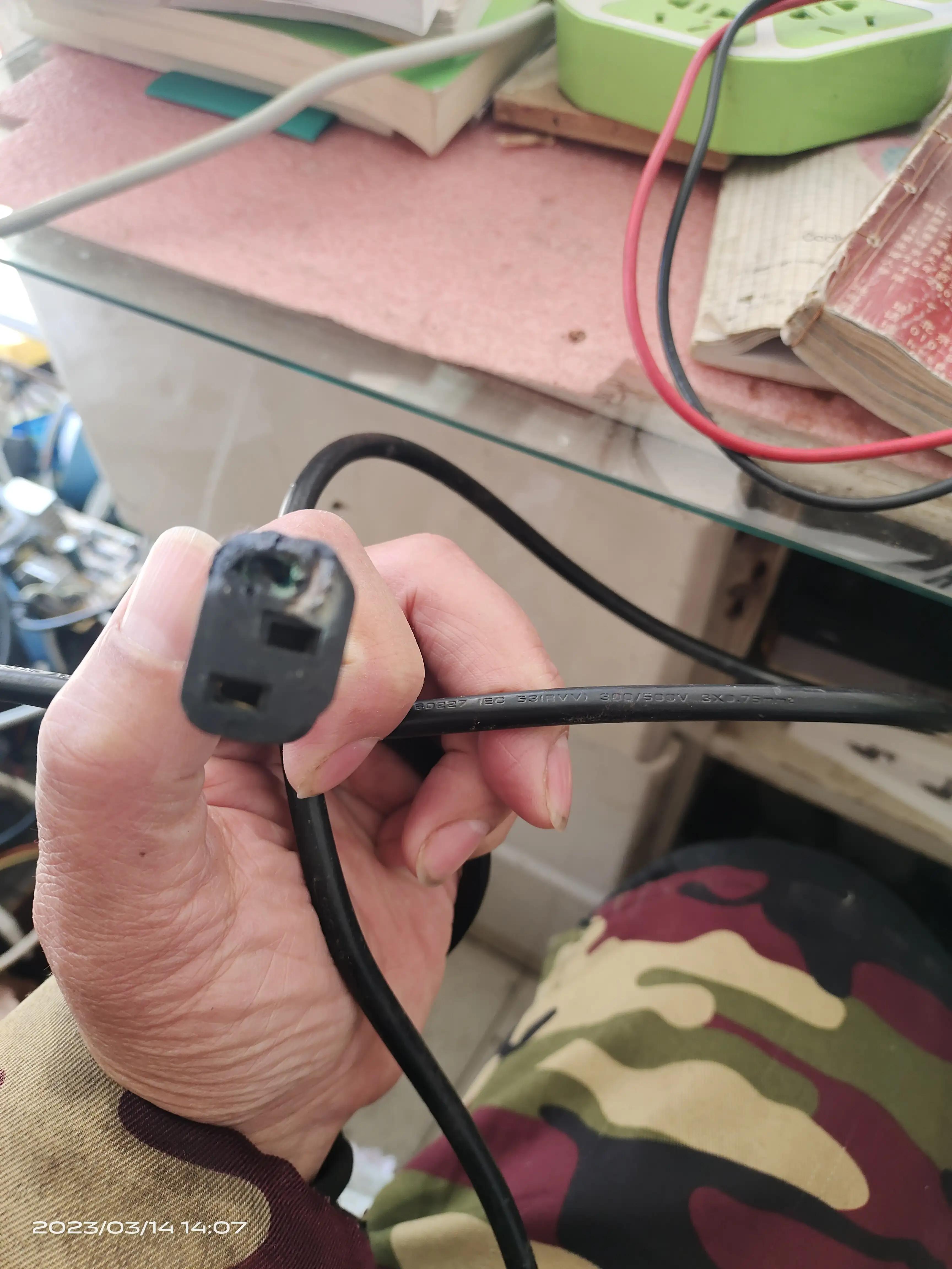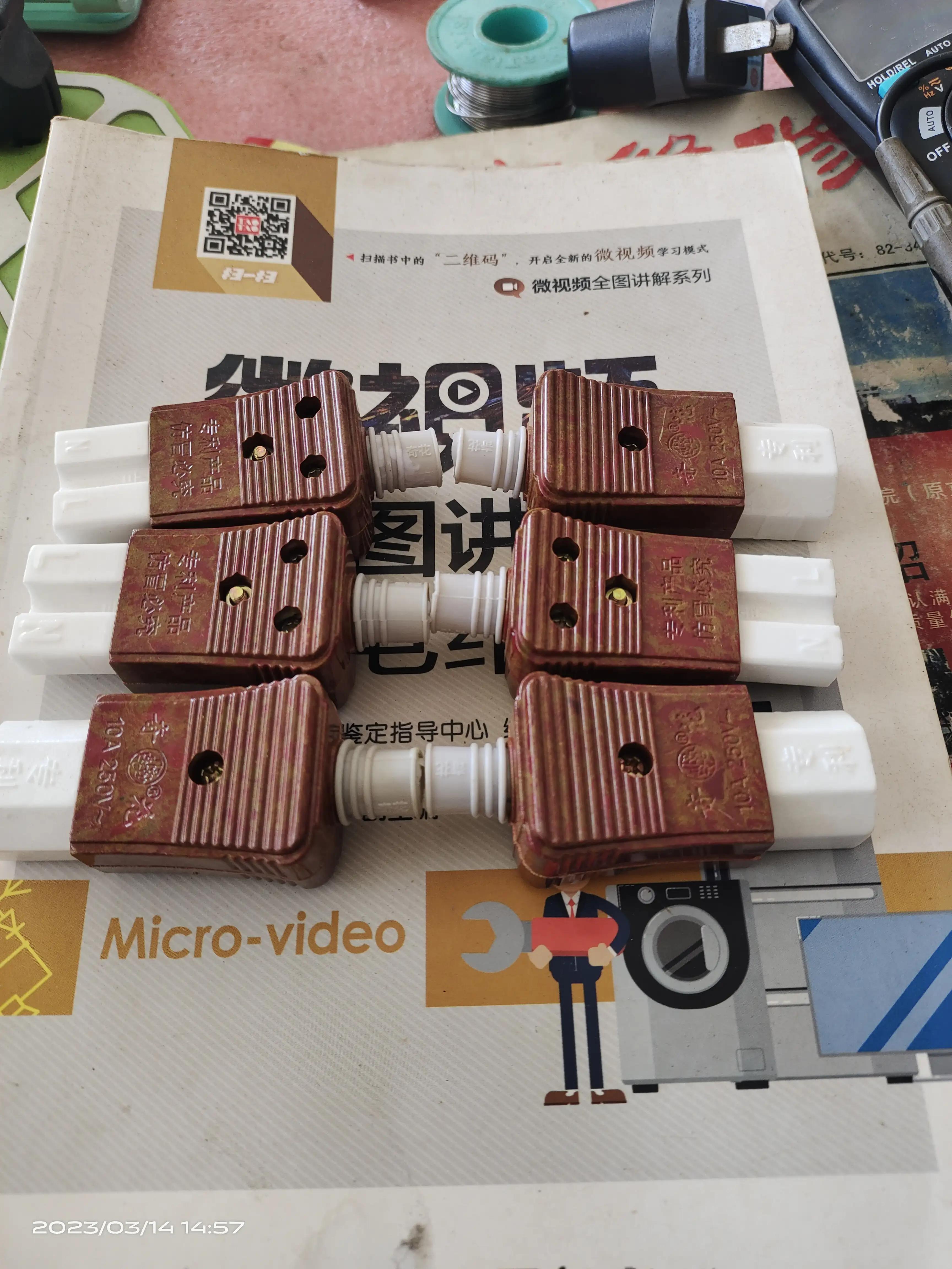 电饭煲、电水壶常用供电电线插头,功率小于1KW使用0.75mm²Ⅹ3导线较安全,一般而言此线径导线承受1.5 KW功率电器能用,若使用1.0mm²Ⅹ3导线可承受3KW功率电器。1.5mm²Ⅹ3导线可承受5KW功率电器。但此线三角胶头常常因通电时间较长容量烧坏变形,现更换胶木瓷质耐高温三角插头即可避免经常烧坏的故障!