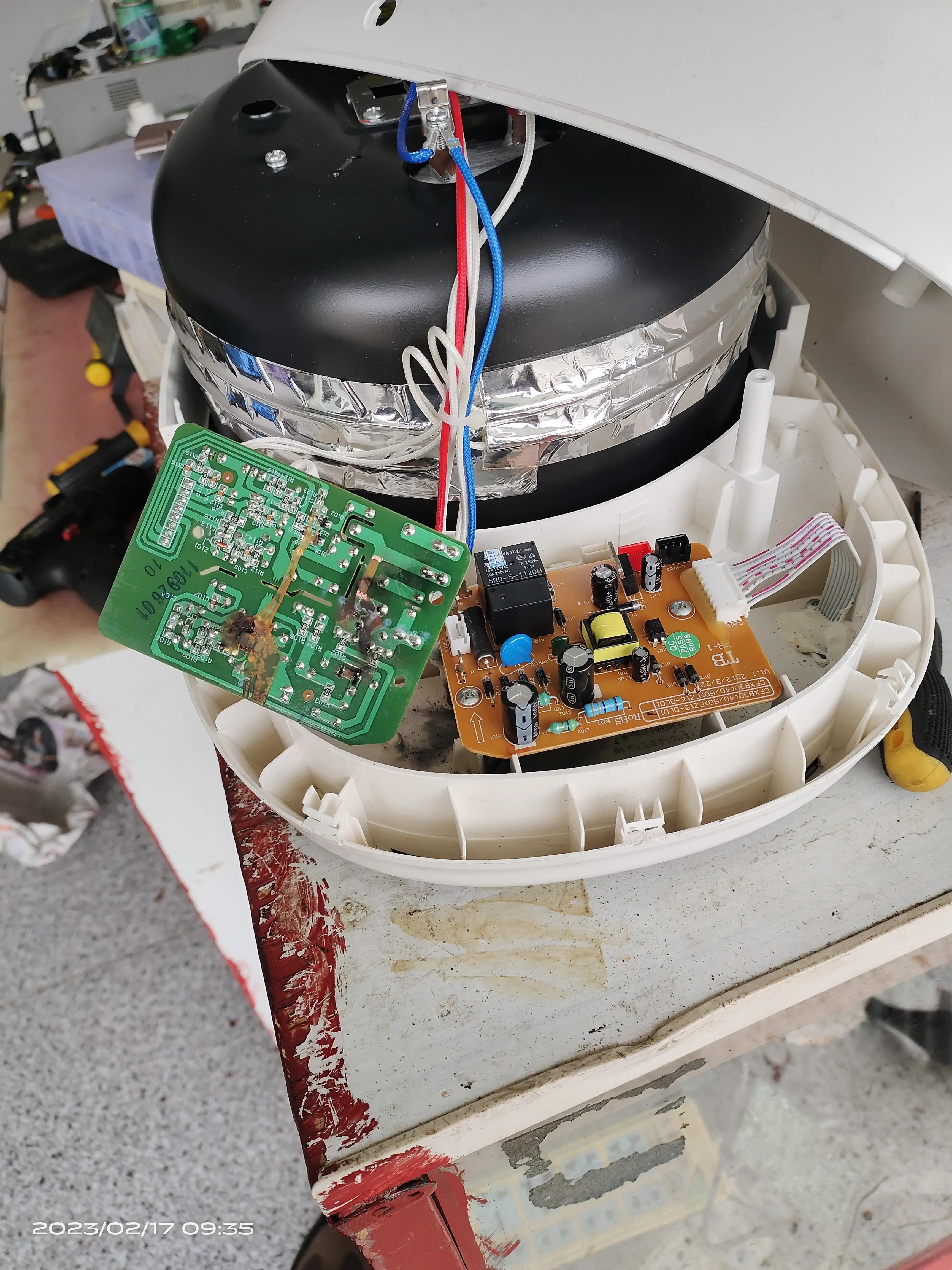 此为另一品牌智能电饭煲无法开机使用,经检测为电控板电源芯片烧焦损坏无法元件级维修了,更换主控制板后故障排除。