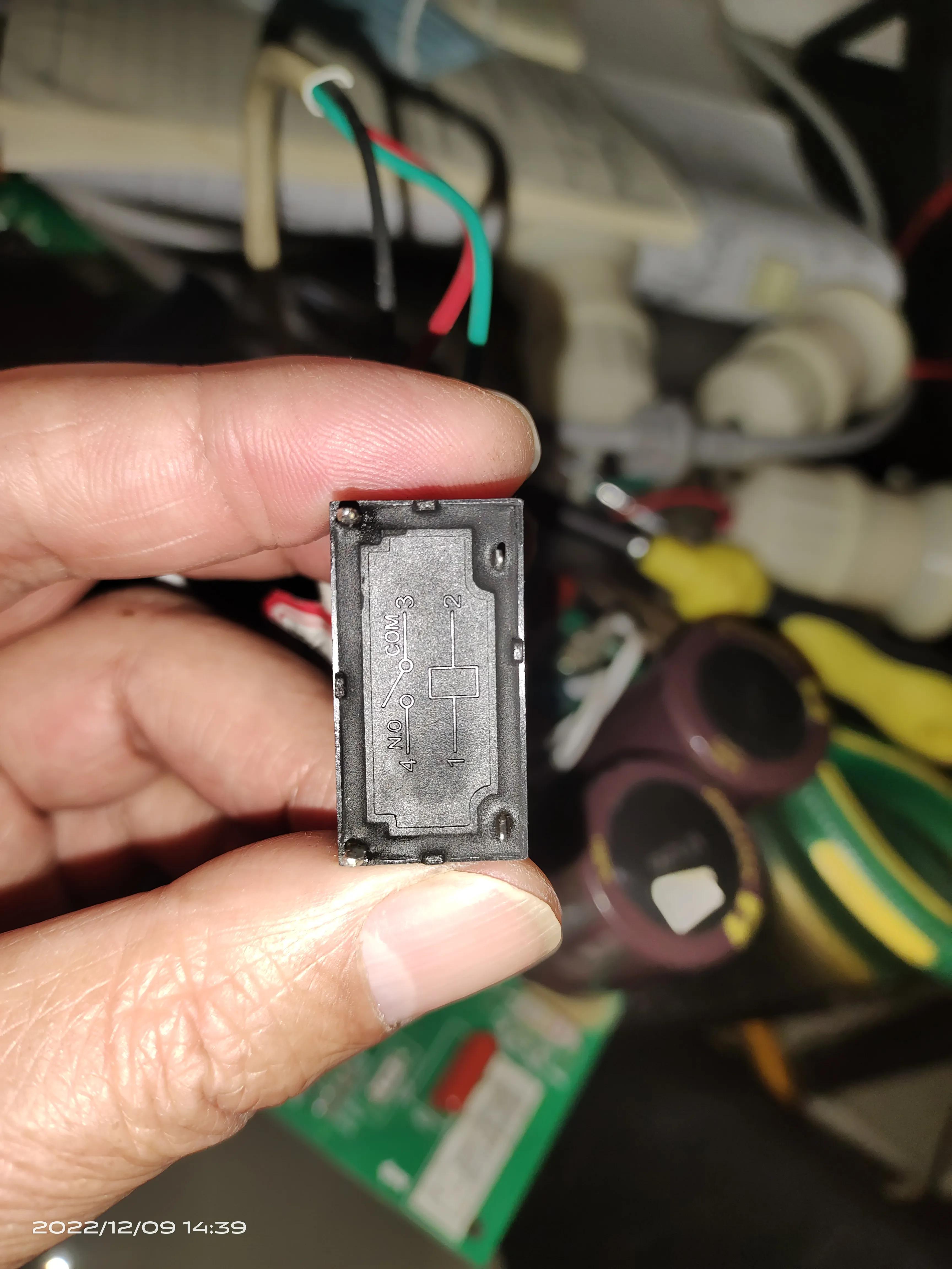 此为变频空调电控制板上直流继电器元件,功能、线圈引脚清晰可见。