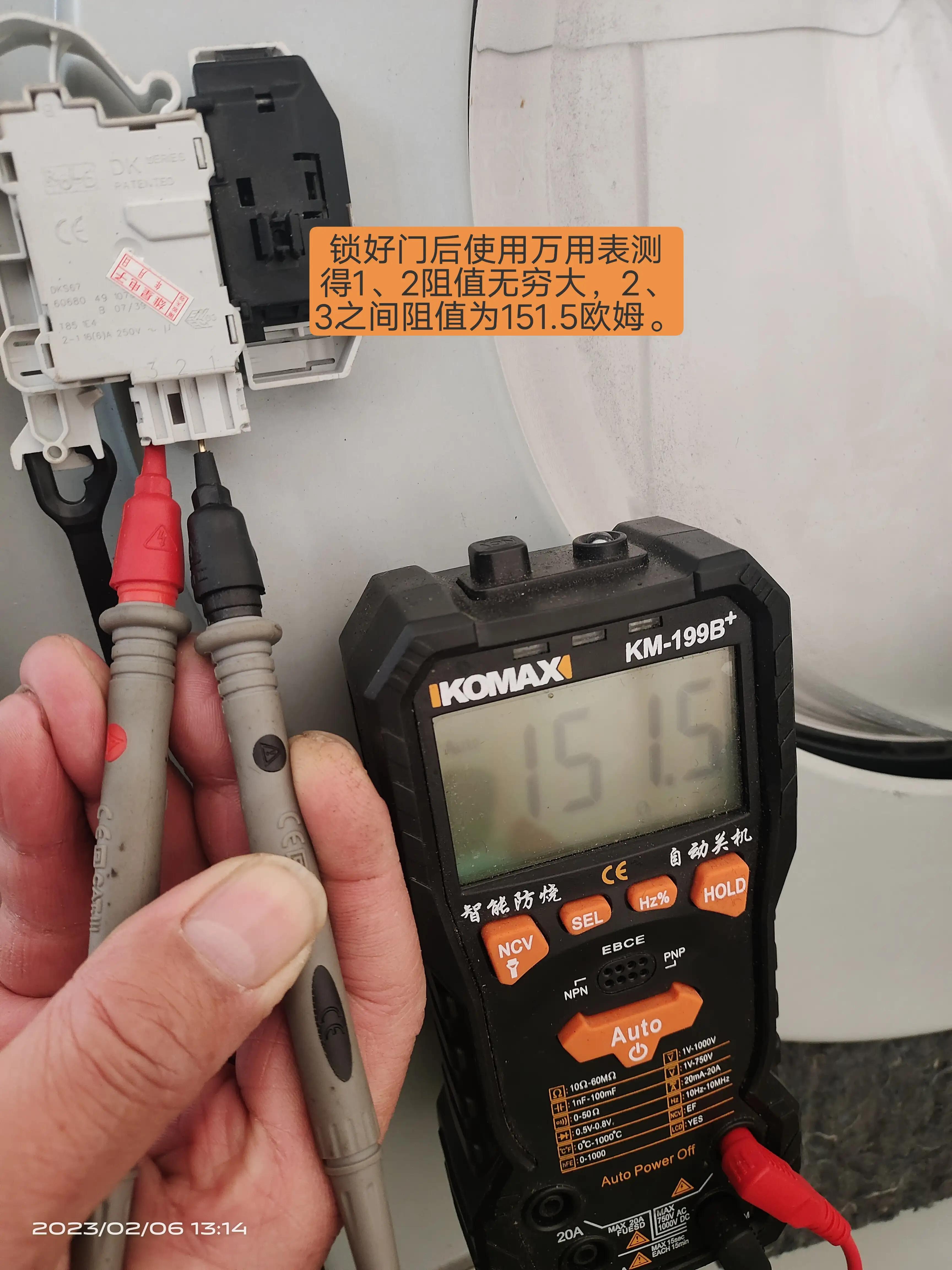 此为西门子滚筒洗衣机门锁开关正常上锁后的数据值,约151欧姆。