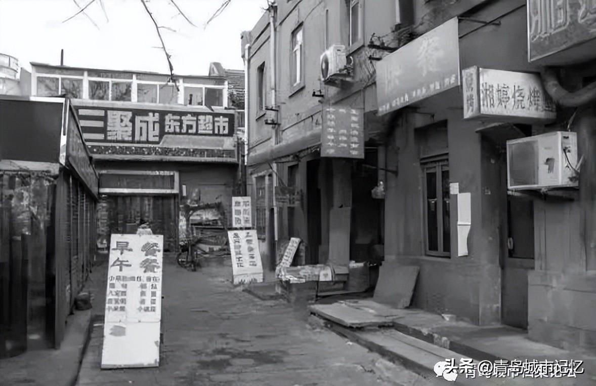 照相馆后来变成了东方饭店的花店,往西就是广西路了,紧挨着的是自行车修理铺,后来成了奶站,上世纪三十年代,这里是在青岛文化史上留下过不可磨灭足迹的荒岛书店。奶站旁边是中国银行的一个储蓄所,再往西就是市场的北大门了。