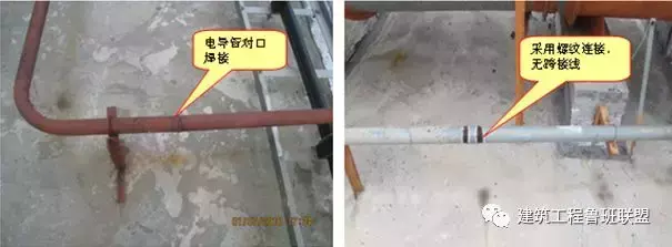 通病07电线导管对口焊接,镀锌管丝接无跨接(或焊接)