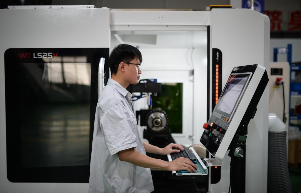 员工在位于广东省佛山市的原点智能技术有限公司车间操作数控机床(2024年5月16日摄)。新华社记者 李任滋 摄