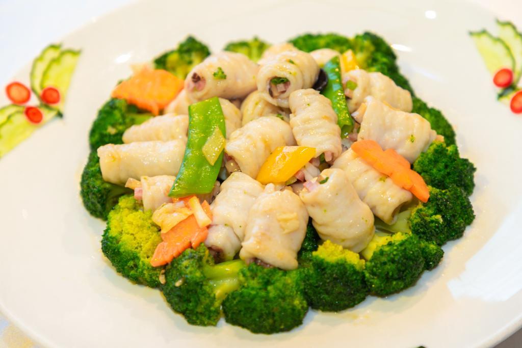 2024年8月20日,顺德名厨制作的顺德名菜碧绿绉纱鱼卷。何冠洪 摄