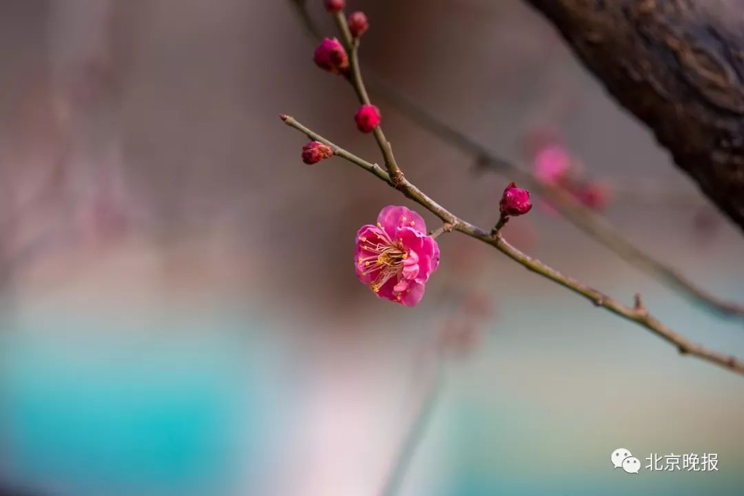 梅花: 初春开,白粉红,香味淡,花瓣柔软“纸”质感。