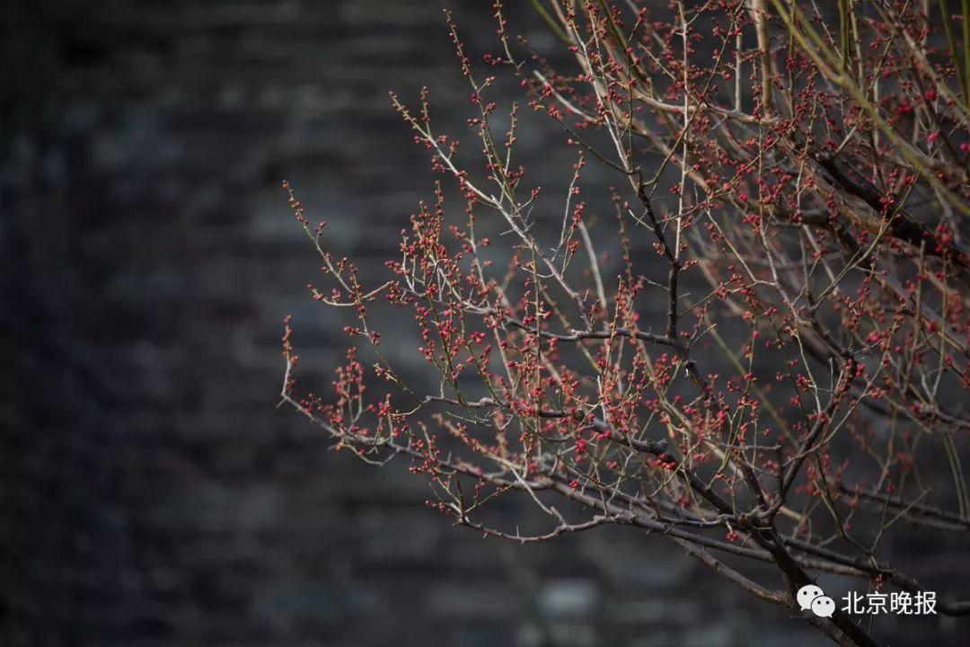 杏花: 红“屁股”花萼红枝干,仲春花朵贴枝开,3~4月才开花。