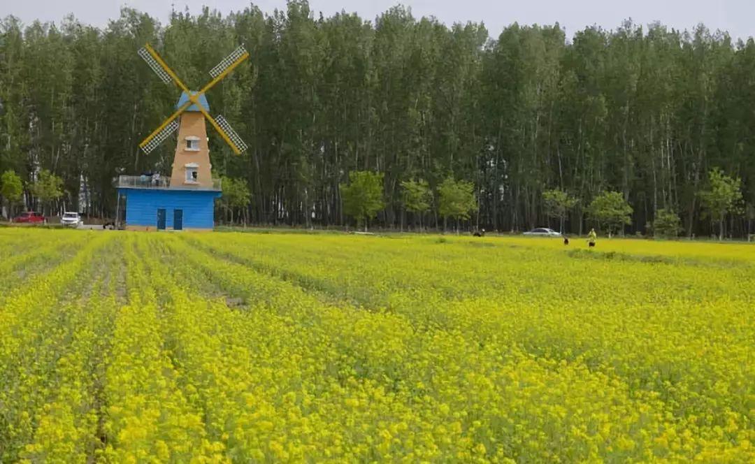 位于海淀区上庄镇的油菜花海,充分利用了水稻插秧前的空闲期。在五月上旬,京西稻的稻田里将能看到数百亩油菜花齐开放的壮观场景。