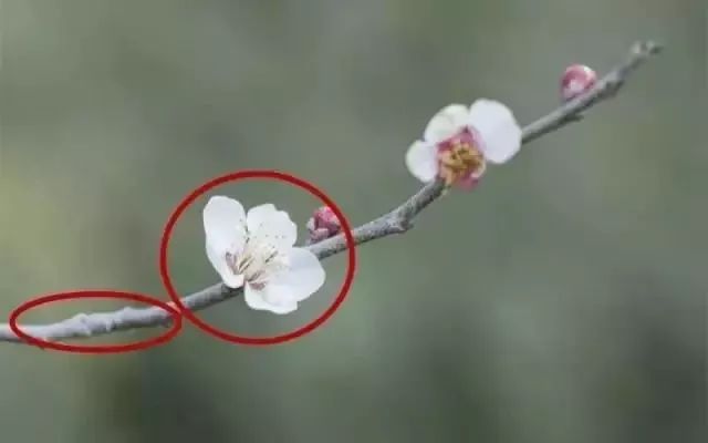 梅花: 花瓣圆圆单朵开,梅子香,花朵贴枝无叶子,1~3月开得早。