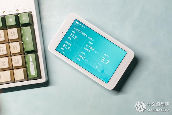 看惯了全面屏的窄边框,米家空气检测仪的变框倒是让我想到老款iPad,也像个初期大屏MP4。