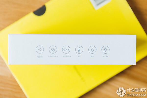侧面标明了这款检测仪可以检测的参数,除了传统的PM2.5外,总挥发性有机物(TVOC),二氧化碳以及温度湿度。