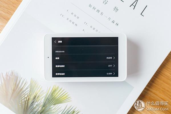 具备自动调节亮度功能,夜间也可以关闭屏幕,还提供了供电时候是否灭屏的选项。