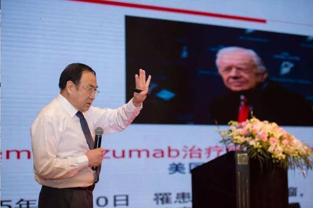 而李安民又有新的发明:把这个瘤子进行局部治疗,先在头上打一个小孔,然后把其发明的专利,在头上的小孔直接给插进瘤子里去,一端给他埋在头皮下面,术后把药精确制导的核导弹,通过皮下注射,直接转流到主流的中心去了。胶质瘤治疗,现在就有十项技术在做,而且全世界能够治好胶质瘤的目前还没有。