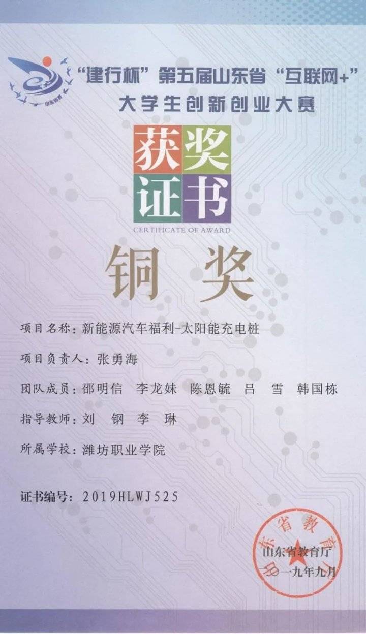 学生参加2019年山东省职业院校技能大赛“新能源汽车技术与服务”赛项,获二等奖