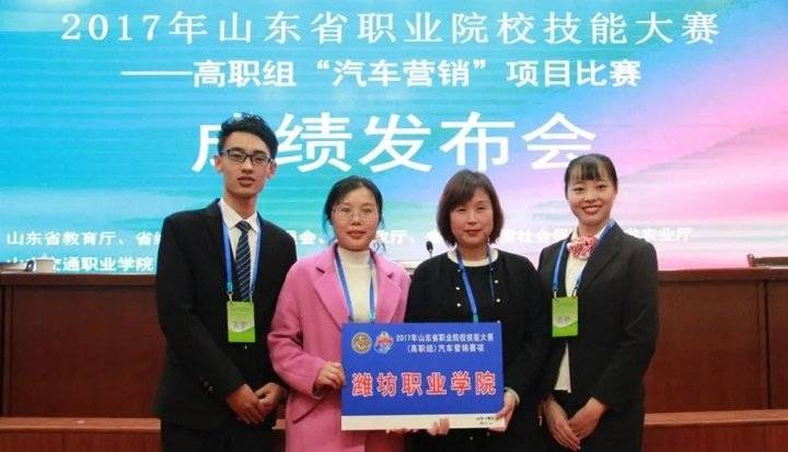 学生参加2017年山东省职业院校技能大赛“汽车营销”大赛,获一等奖