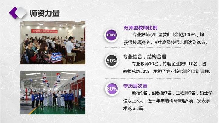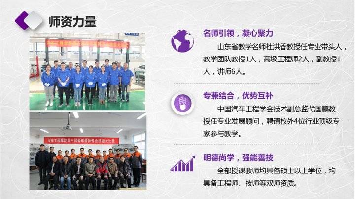 山东省技能型人才培养特色名校重点建设专业。专业面向汽车销售与服务市场,培养汽车营销、汽车售后服务、二手车鉴定评估及汽车保险等领域优秀的高素质技术技能人才,就业灵活,个人发展空间大。