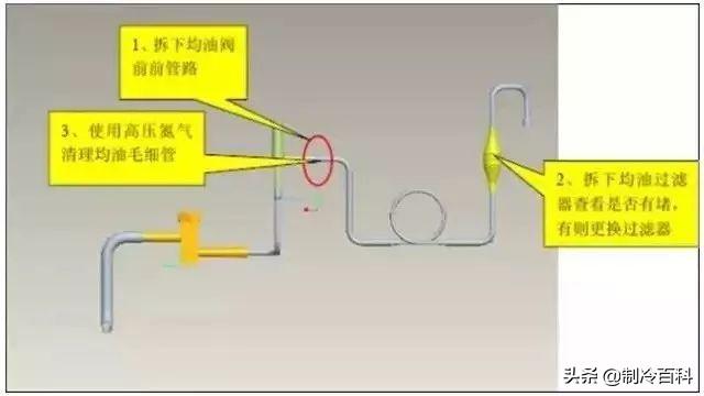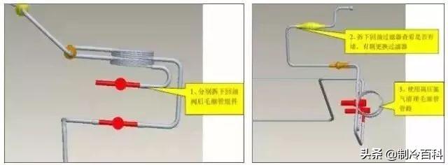 确认完需要更换的零部件之后,需要确认系统管路是否有异常,需要使用氮气对主管路吹洗外,同时要重点检测并清理油路系统。