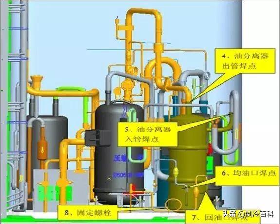 注意:要收集油分、汽分、储液罐内倒出的压缩机润滑油量,并做好相关记录,方便更换压缩机、汽分等原器件后,对系统进行润滑油的补充追加。
