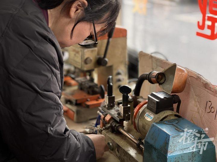 “老黄经常跑出去给他们开锁,我就守着店,给顾客搓钥匙、配电池、修手表。我们这里配出去的钥匙准确率很高,有名气了,很多人老大远都跑过来配。有一个老顾客,她是从杭州东站那边过来的,因为是房东,所以要多配几把钥匙。”店主楼柯梅略带自豪地说。