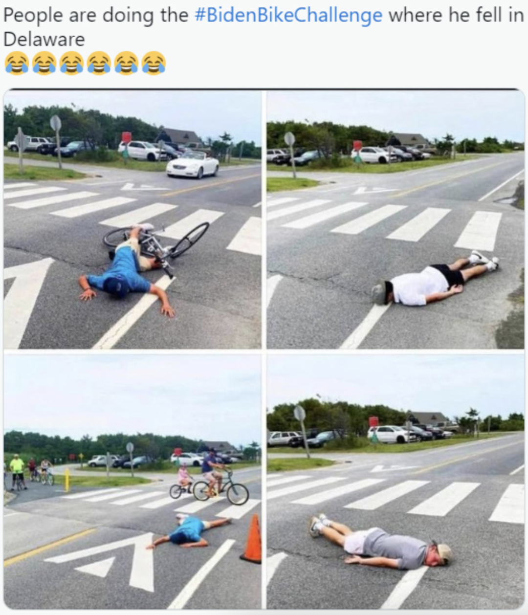 至于登机三连摔、骑自行车摔倒……成了美国乃至全世界互联网的热梗,美国网友还发起了“拜登自行车挑战”。