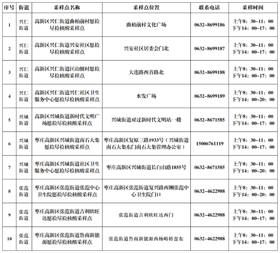 最全!枣庄市愿检尽检核酸采样点在这里