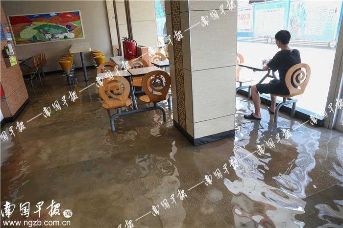 一市民在中华友爱路口附近一餐厅就餐时,被积水泡到脚。