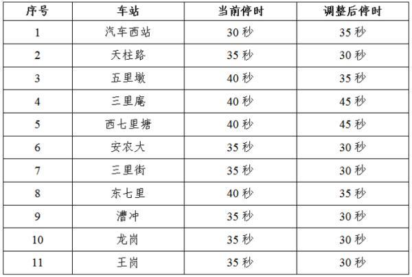 2号线方面,南岗站开往三十埠站方向旅行速度将由33.39km/h提升至33.67km/h,三十埠站开往南岗站方向旅行速度将由33.35km/h提升至33.63km/h。