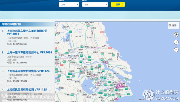 ▲找到网站上的经销商查询窗口,输入相应的地址,点击搜索。