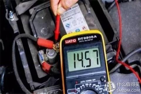 ▲万用表测试汽车电瓶电压