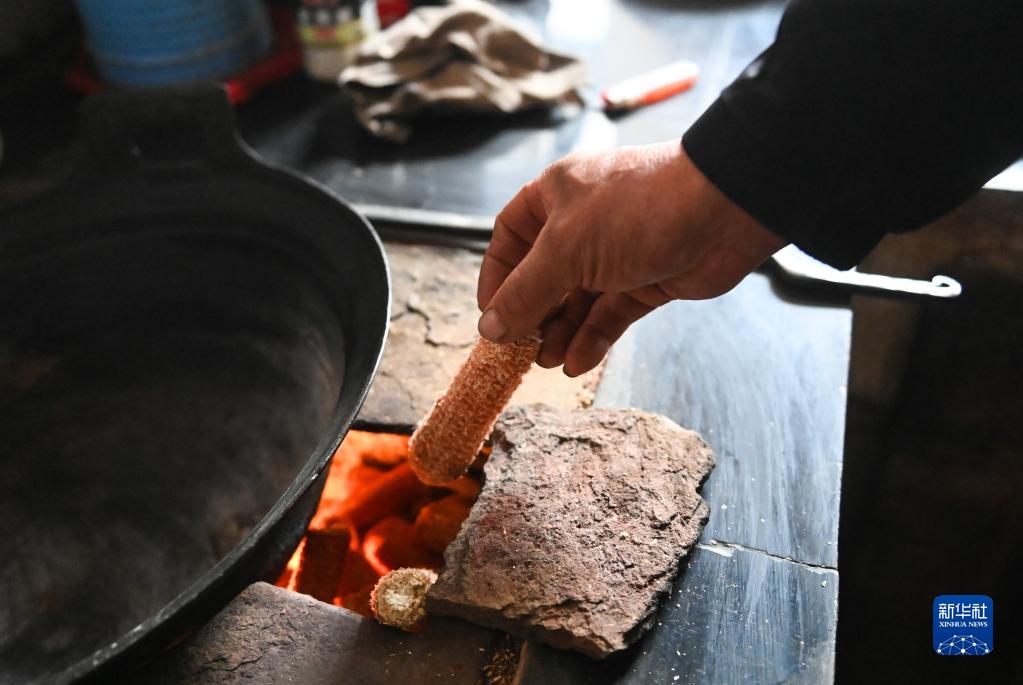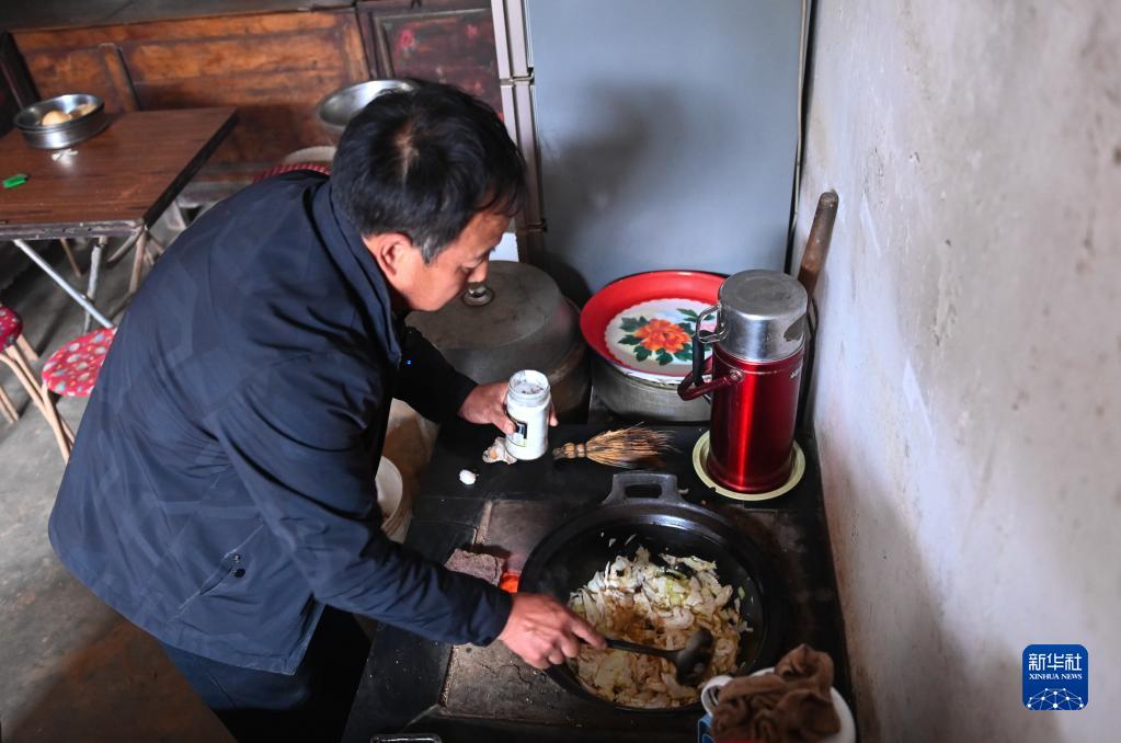 10月12日,在山西省汾西县本家庄自然村,胡志荣在做中午饭。新华社记者 柴婷 摄
