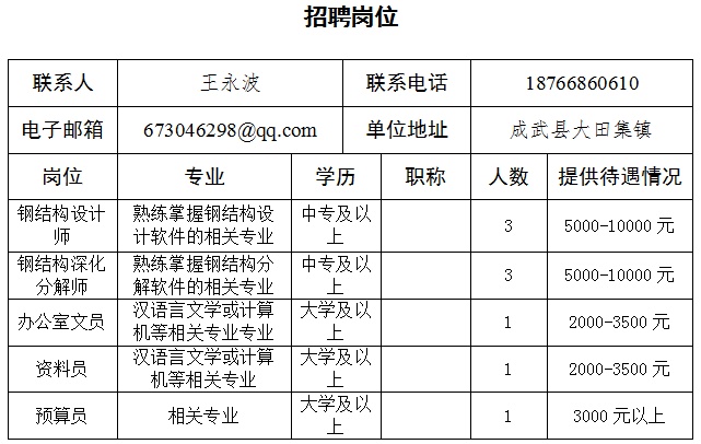 联系人:邱女士:18265000565 刘女士:18353067102招聘热线:0530-6117668 公司地址:成武县九女集镇政府东100米