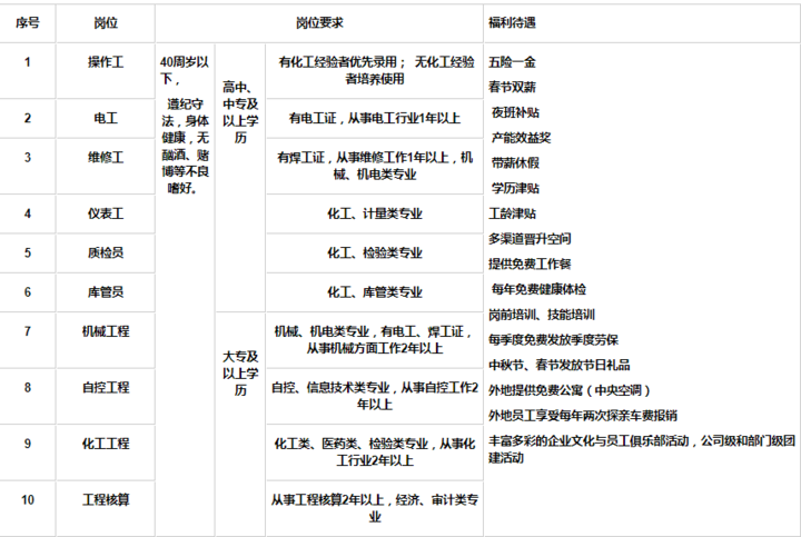 5、 技术工程师:2名 ,大专及以上学历,无机非金属化工及相近专业,25-40周岁,3年以上工作经验,沟通能力强。
