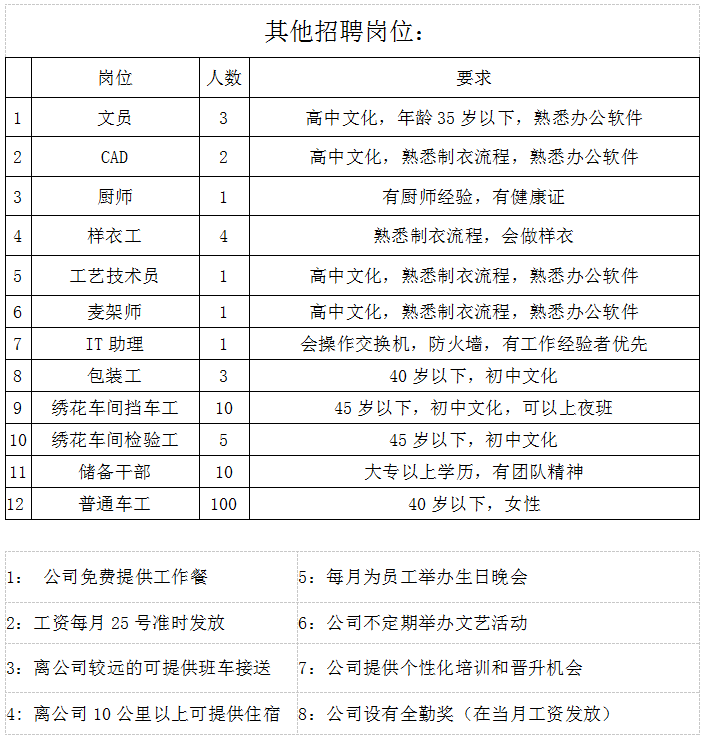 待遇:待遇优厚,有社保,多种福利,包吃包住。
