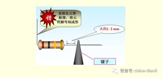 元器件在印制板上的排列和安装有两种方式,一种是立式,另一种是卧式。元器件引线弯成的形状应根据焊盘孔的距离不同而加工成型。加工时,注意不要将引线齐根弯折,一般应留1.5mm以上,弯曲不要成死角,圆弧半径应大于引线直径的1~2倍。并用工具保护好引线的根部,以免损坏元器件。同类元件要保持高度一致。各元器件的符号标志向上(卧式)或向外(立式),以便于检查。