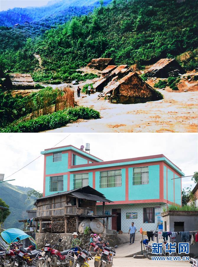 这是一张拼版照片:上图为苦聪人的老房子(资料照片);下图为11月13日在云南省金平苗族瑶族傣族自治县者米乡地棚村小组拍摄的苦聪人房屋(新华社记者胡超摄)。 新华社发