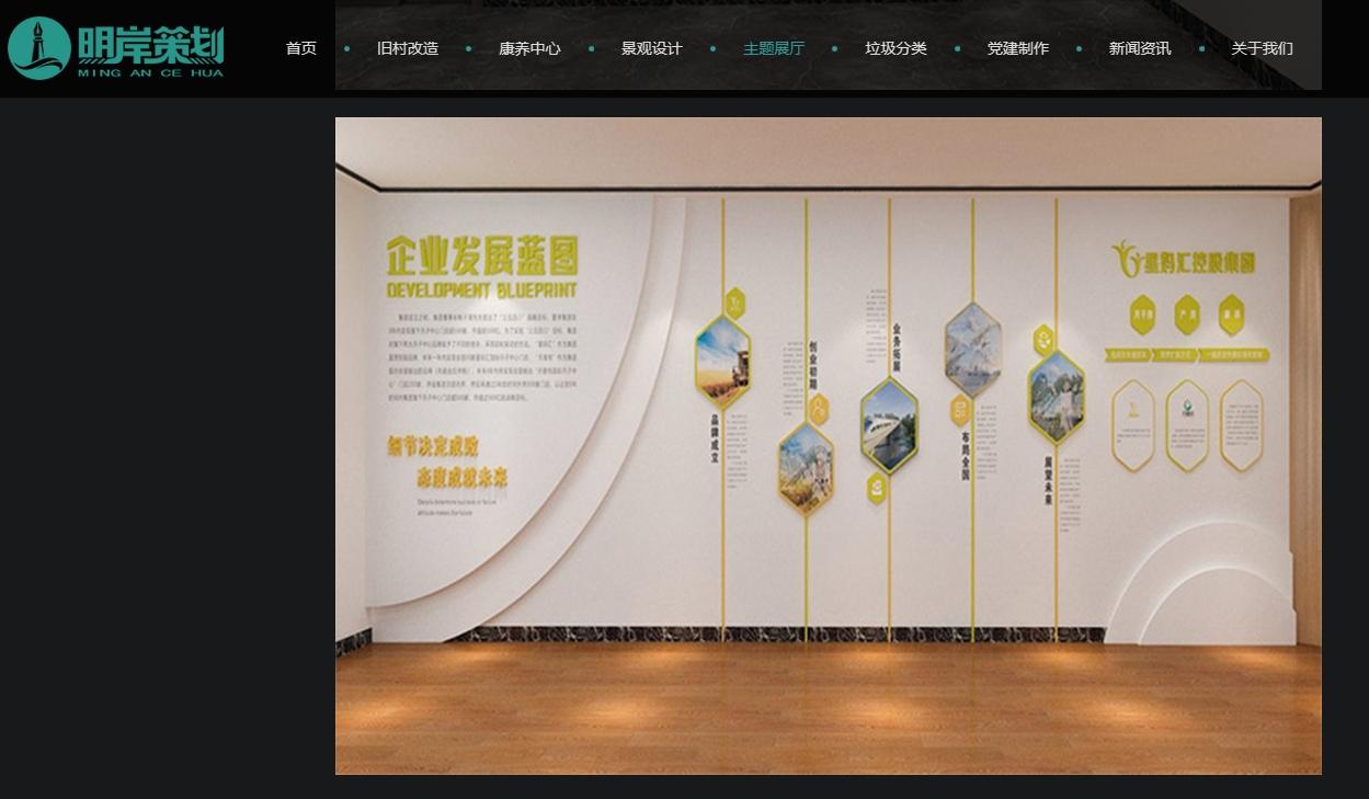 明岸(广州)企业形象策划股份有限公司是一家专业服务于各级党政机关的全面性企业,以独特精准的规划设计服务,在乡村振兴,康养中心设计,旧村改造、主题公园、主题广场、科技馆、党史馆等多领域赢得客户认可,并在各级单位推广传播。 多年来,业绩非凡。所承接并完成的各类大、中、小型工程受到了业主的好评,在市场赢得良好的信誉。 公司体制完整、部门齐全,对工程的设计、施工及后期服务有一套成熟有效的管理制度。 我们有丰富的真实案例供参考,想要了解详情请进入官网浏览。