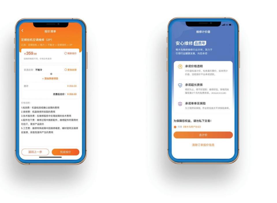 啄木鸟计价器:首页及前期费用估算页 来自啄木鸟维修招股书