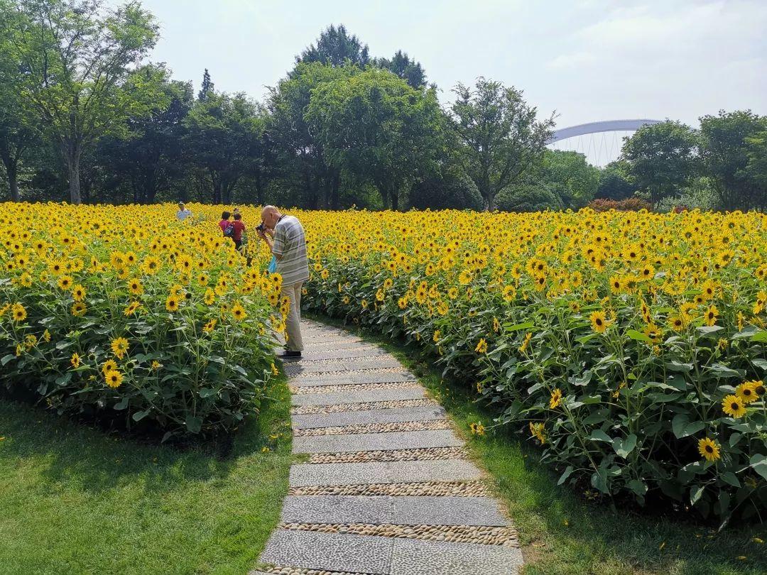 今年5月份种植的向日葵小苗正在南园滨江绿地绽放出金灿灿的“笑容”!