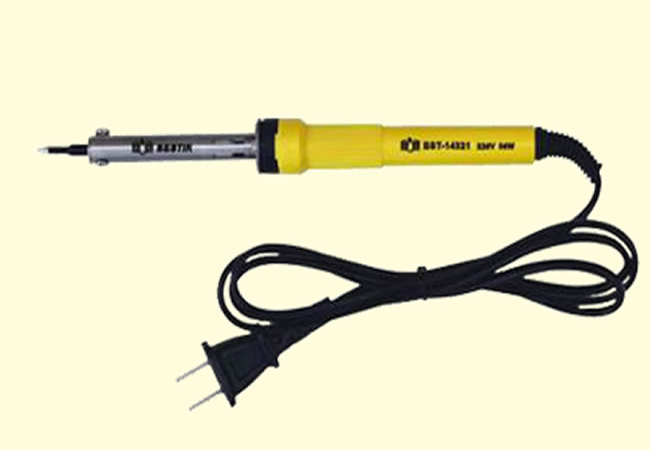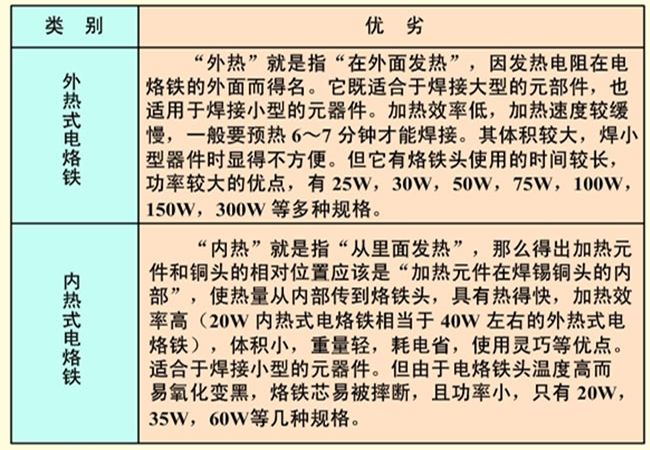 由烙铁头、烙铁芯、外壳、木柄、电源引线、插头等部分构成,烙铁头安装在烙铁芯里面,所以称为外热式电烙铁。