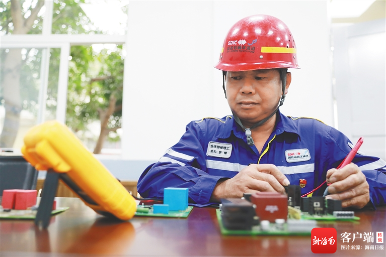 罗健在检修设备。海南日报记者 周达延 摄