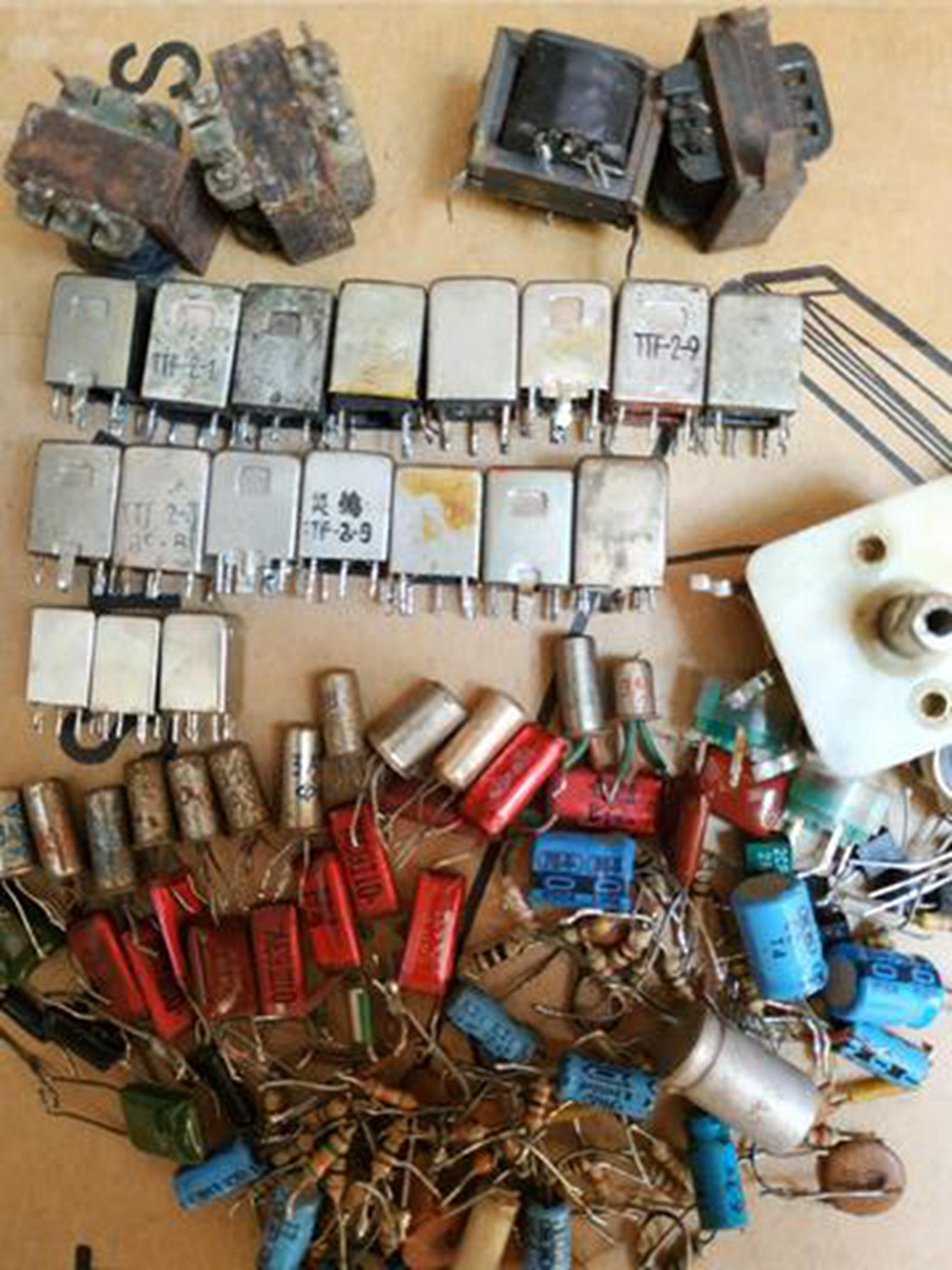 我去的最多的是西大街光学仪器厂眼镜门市部西边的一家专门处理废旧无线电器材的商店。那儿卖的东西基本没有新的,都是旧的,是从废电器上拆下来,有电子管、电子管插座、晶体管、电阻、电容、电位器,晶体管又分二极管、三极管,其中还有大功率管(曾买过一个,效果不好),电容中还有老大个儿的电解电容。那儿的东西有的论个卖,有的论斤卖,都很便宜,但都不给测试,买了坏的就得认倒霉。也不知这些东西都是从什么电器上拆下来的,绝大部分能用。