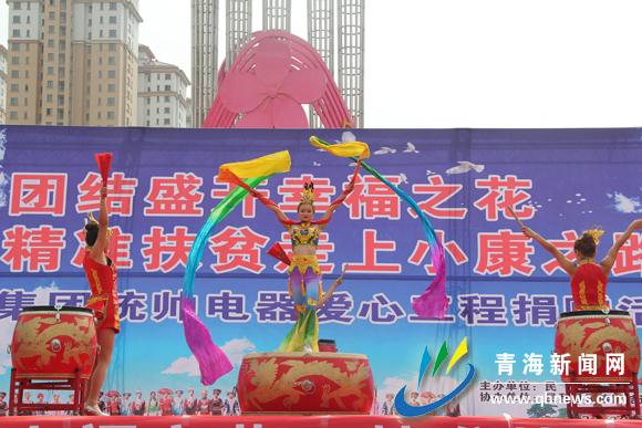 青海新闻网讯 近日,由海东市扶贫开发局、民和县扶贫开发局、海尔统帅电器西宁分公司、西宁市普天乐商贸有限责任公司联合发起,民和县扶贫局主办、民和县民族团结进步创建工作领导小组协办的“统帅电器爱心工程”捐赠仪式在民和县桃花广场举行。活动以“民族团结盛开幸福之花精准扶贫走上小康之路”为主题,共为民和县30个贫困户家庭捐赠价值达3万余元的30台洗衣机,为其他贫困户发放11000多张总价值550余万元的家电扶贫惠民基金。