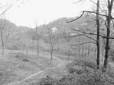 绕过一道弯,再走下一个不大的山坡,一块宽阔的平地出现在眼前,其间杂树丛生,野草藤蔓缠绕。