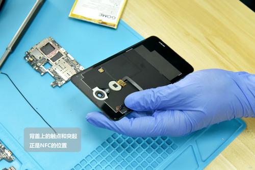 从背盖上石墨散热片的突起和该位置的触点可以看出,国美U7是支持NFC功能的。
