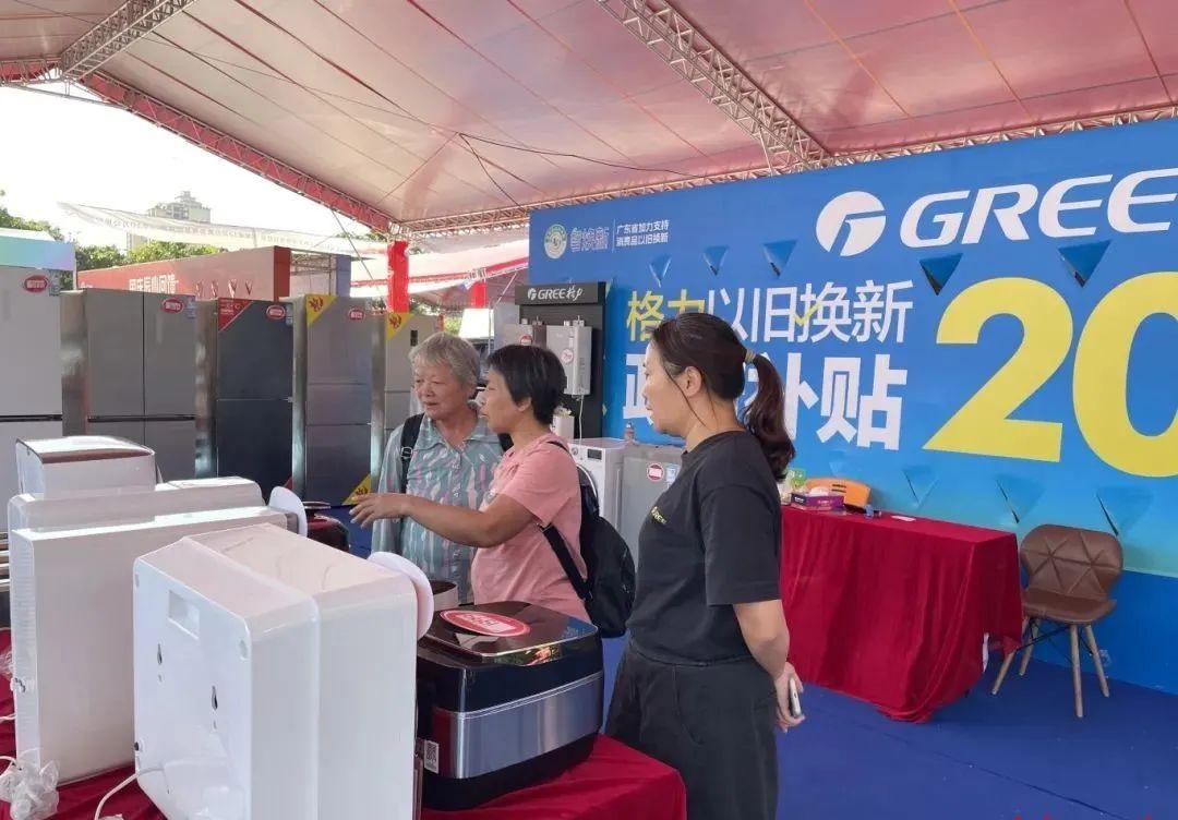 记者来到位于花都广场的家电以旧换新摊位上,映入眼帘的是购销两旺的热闹景象,各个款型的家电产品整齐有序地摆放在展板上,前来选购的顾客络绎不绝,工作人员耐心答疑解惑,顾客消费热情高涨。