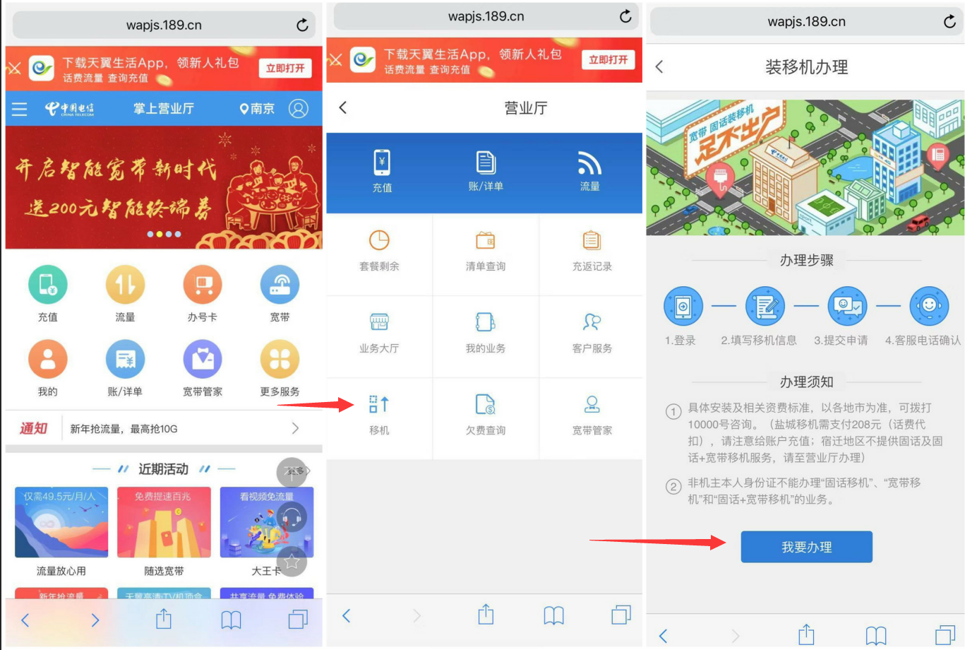 目前江苏电信宽带移机业务除了在线下营业厅办理,还可以在江苏电信网上营业厅和江苏电信掌上营业厅在线办理 。