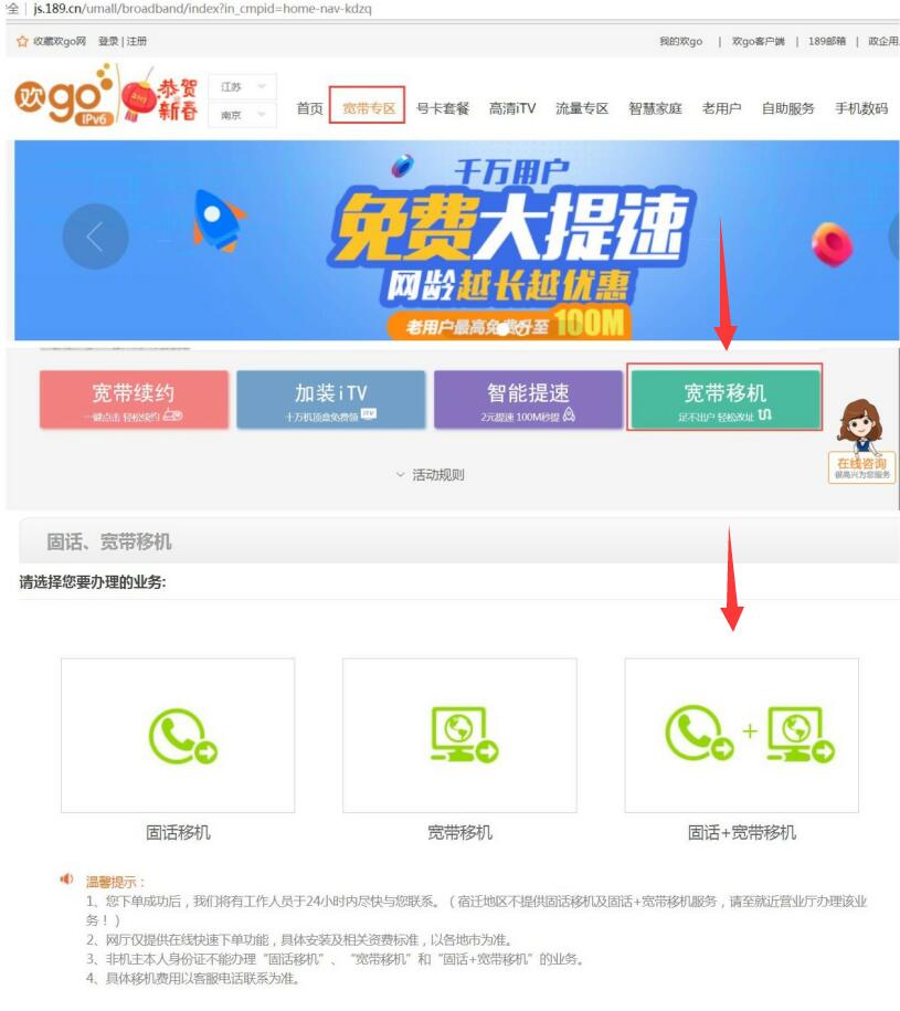 无法在线办理的用户也可以带上机主本人身份证去附近有权限办理宽带移机业务的营业厅咨询办理。